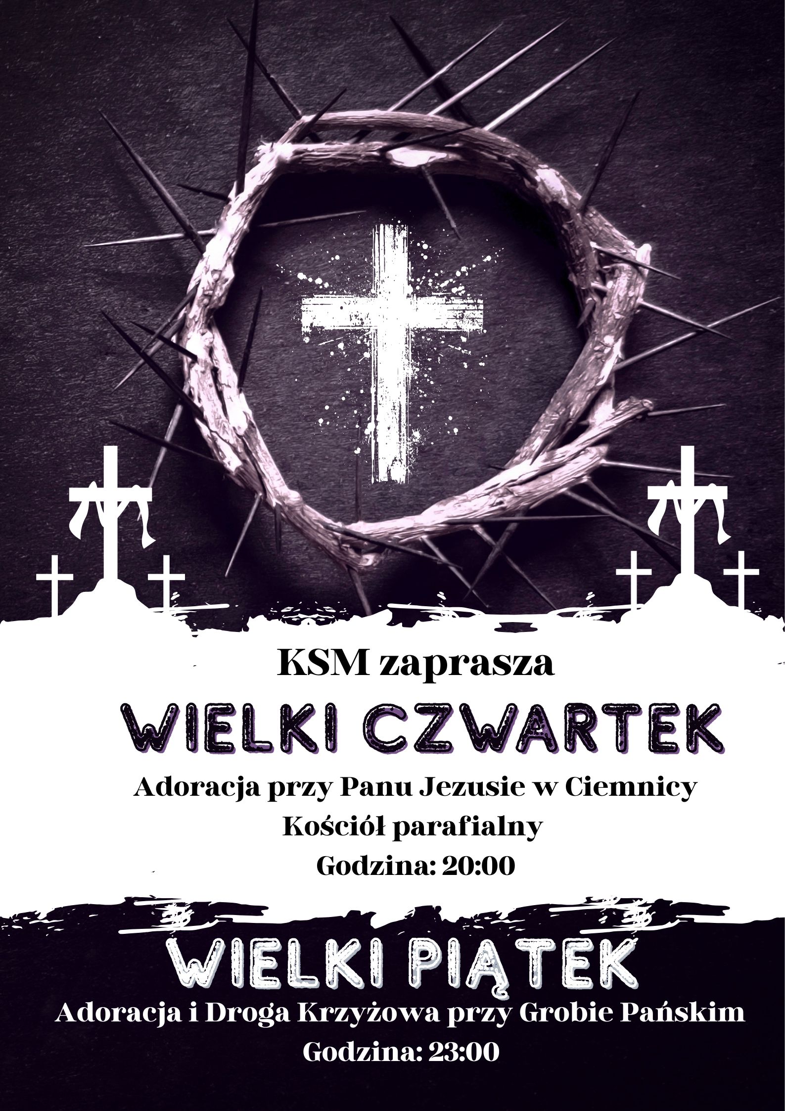 W Wielki Czwartek oraz Wielki Piątek spotkajmy się razem, by zatrzymać się w ciszy, modlitwie i refleksji nad tym, co najważniejsze. Szczegółowe informacje znajdziecie na plakacie Serdecznie zapraszamy!